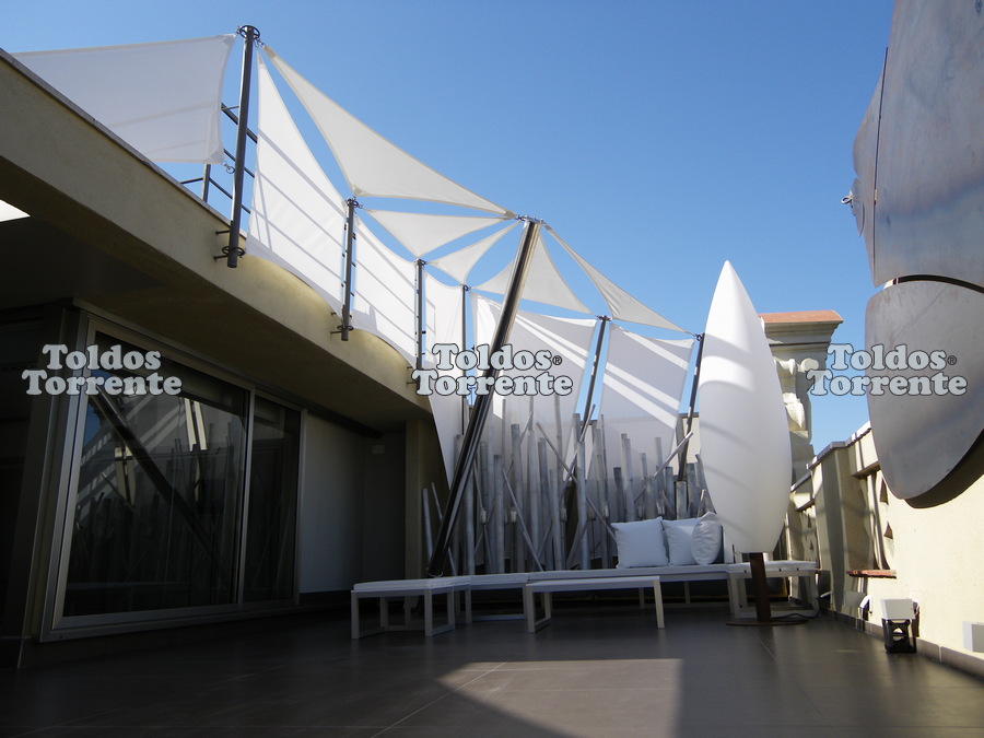Es un tipo de solución de protección solar muy singular, con la posibilidad de diseñar infinitas formas tridimensionales (laxas, aéreas, triangulares, paraboloides hiperbólicos, conoides de revolución, etc).