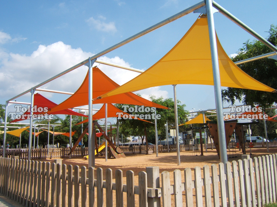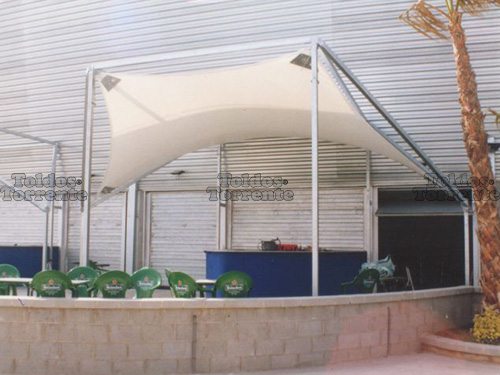 Resultando estructuras con carácter sugerente realzando la ligereza de las lonas tensadas.