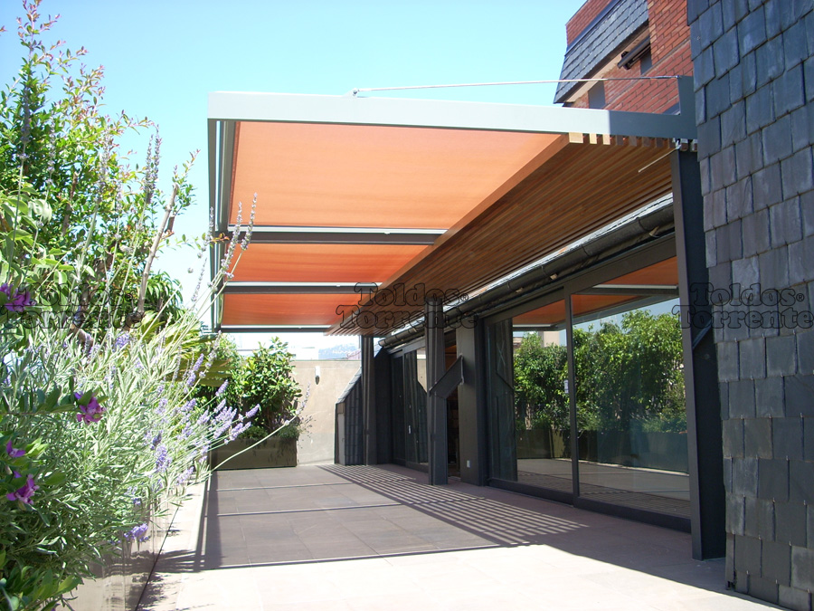 Gracias a la posibilidad de combinarlas con cubiertas de metacrilato, madera, policarbonatos, etc… y, también, con los diferentes toldos automáticos tensados de Toldos Torrente®, nos ofrecen una protección frente al sol y la lluvia en nuestra terraza durante todas las épocas del año.