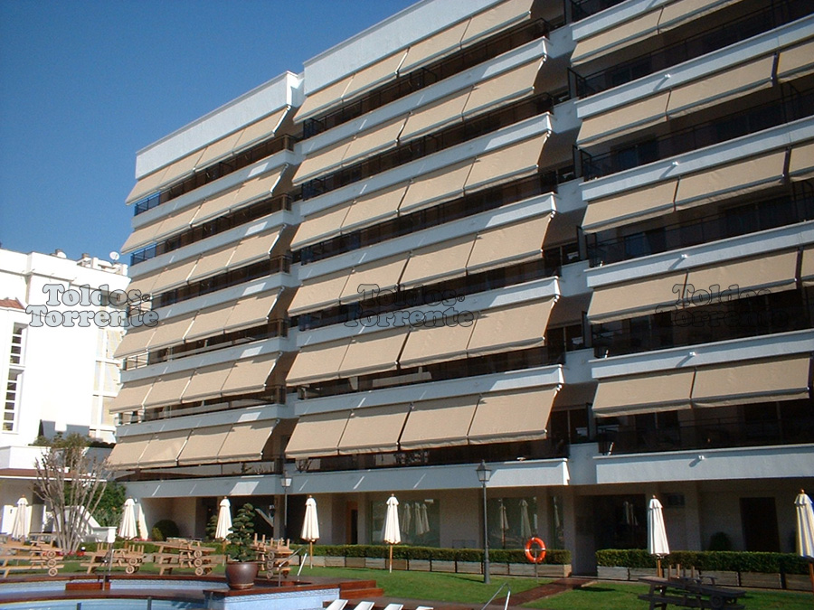 El toldo para balcón brazos articulados de Toldos Torrente® es la opción funcional y versátil para la protección y decoración de todo tipo de balcones. La presencia leve y agradable de un tejido montado sobre una estructura fina y elegante pero de alta resistencia, nos ofrece la posibilidad de usarlo en días de viento y lluvia. Protegiendo nuestro balcón (muebles de exterior, plantas, ropa tendida,...) contra la humedad y el polvo. Resultando, una vez cerrado el toldo, una terraza "limpia", sin ningún elemento fijo.