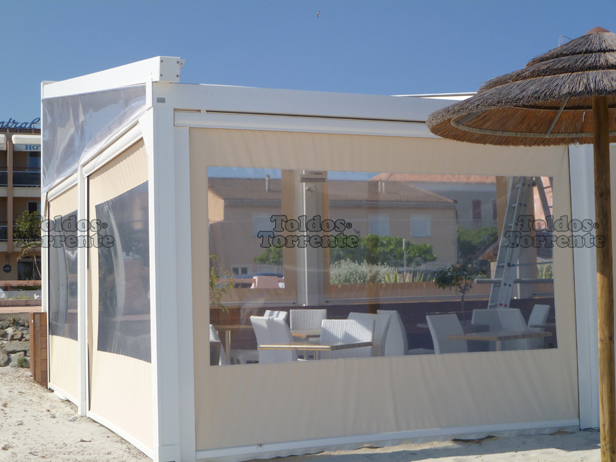 Los toldos para hostelería verticales de Toldos Torrente® son específicamente apropiados para dar sombra a superficies verticales e inclinadas, como las que se utilizan, en la actualidad, en los edificios modernos.